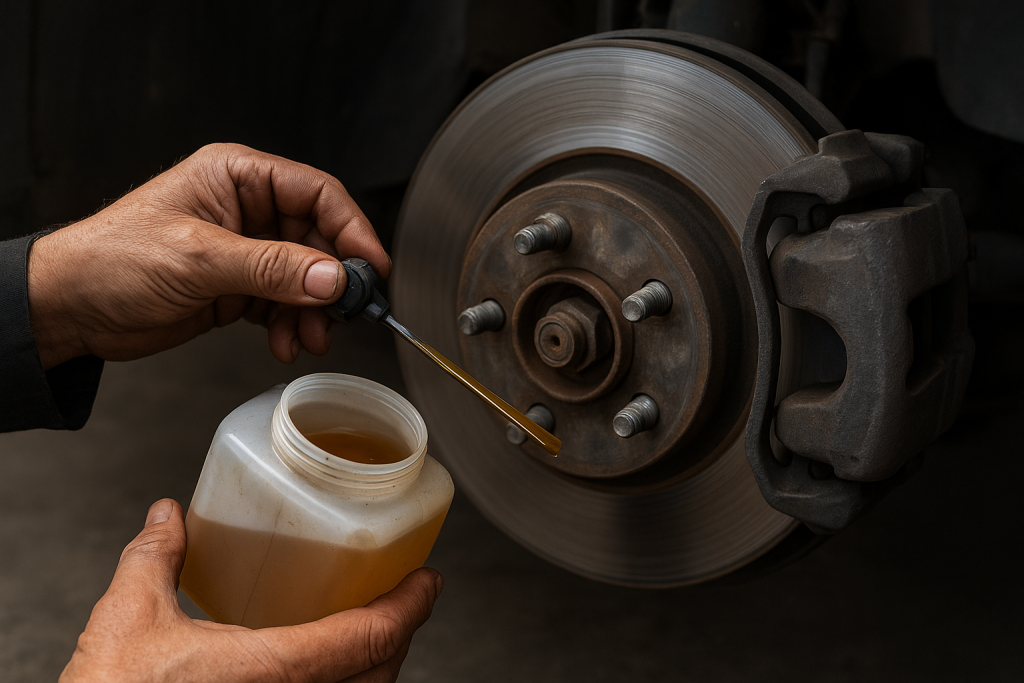 اولین و مهمترین بخش، بررسی سطح و رنگ روغن ترمز است. این مایع در سیستم ترمز نقش انتقال نیرو را دارد، و اگر سطحش پایین بیاید یا رنگ آن تیره و کدر شود، یعنی یا نشتی در سیستم وجود دارد یا زمان تعویضش رسیده است. روغن ترمز شفاف و زرد کمرنگ نشانه سلامت سیستم است، اما اگر به رنگ قهوهای یا سیاه تغییر کرده باشد، یعنی رطوبت و آلودگی در آن نفوذ کرده و باید سریعاً تعویض شود.