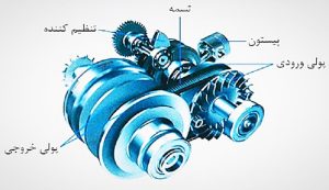 - پولیهای ورودی و خروجی: این پولیها بهطور متغیر میتوانند قطرشان تغییر کند. پولی ورودی معمولاً به موتور متصل است و پولی خروجی به چرخها متصل میشود.