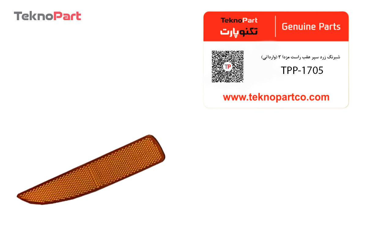 شبرنگ زرد سپر عقب راست مزدا 3 یکی از قطعات ظاهری و ایمنی در خودرو محسوب میشود که در بخش جانبی سپر عقب (سمت راست) نصب شده و با انعکاس نور، نقش مهمی در افزایش دید خودرو در شرایط تاریک و کاهش احتمال تصادف دارد. این قطعه مخصوص مدلهای مزدا 3 طراحی شده و کاملاً با ساختار سپر فابریک هماهنگ است.
